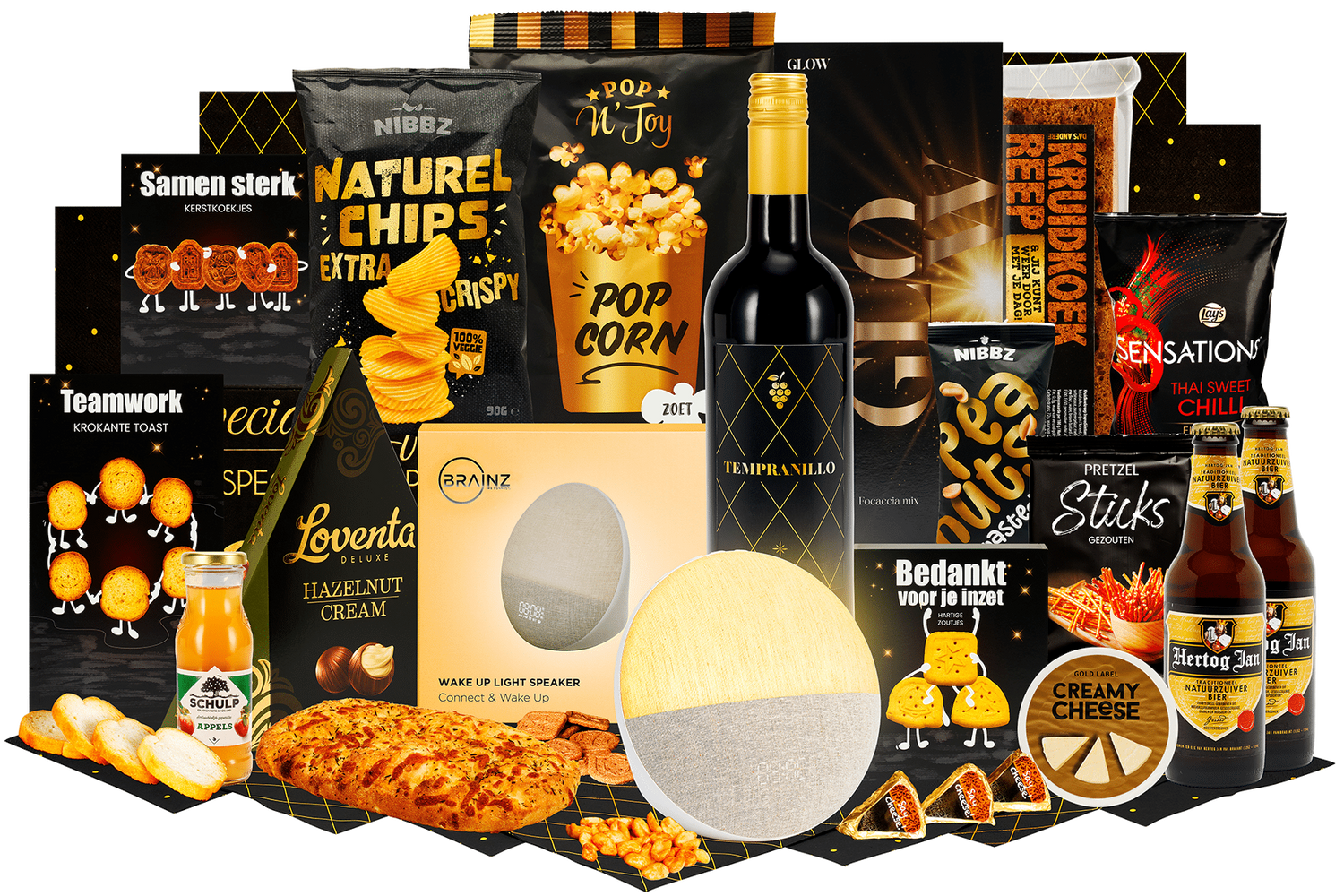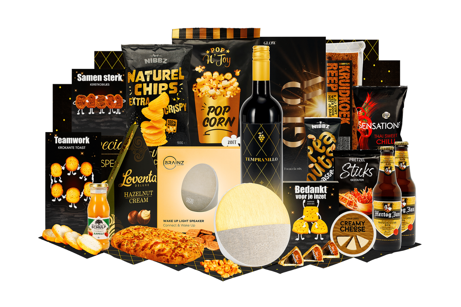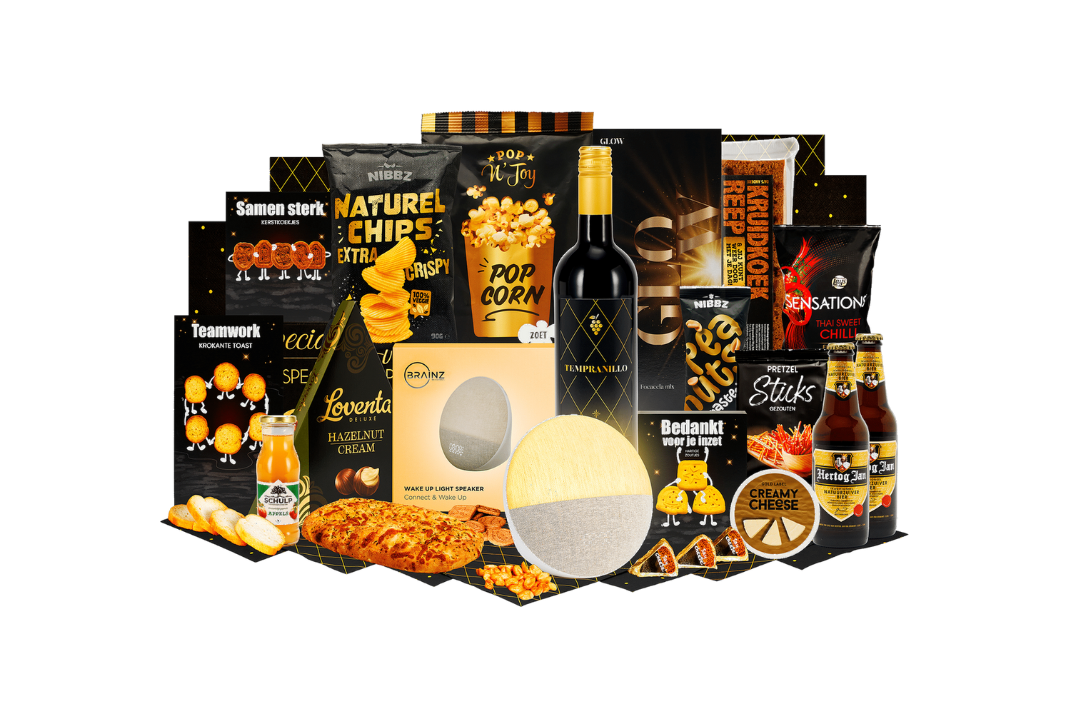 Stralend begin. Een feestelijke selectie om de dag mee te starten of als attent geschenk. Veelzijdige en smaakvolle producten, keurig verpakt in een stijlvolle kerstdoos.