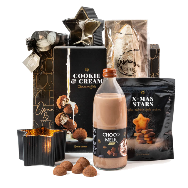 Breng warmte en smaakvolle ontspanning in de koude maanden met dit stijlvolle kerstpakket. Deze zorgvuldig samengestelde verwenbox combineert heerlijke zoetigheden, een romige chocomelk en sfeervolle theelichthouders in de vorm van een ster. Perfect als persoonlijk cadeau, relatiegeschenk of als luxe attentie voor het team — een uitnodiging om te genieten, te ontspannen en de feestdagen extra knus te maken.