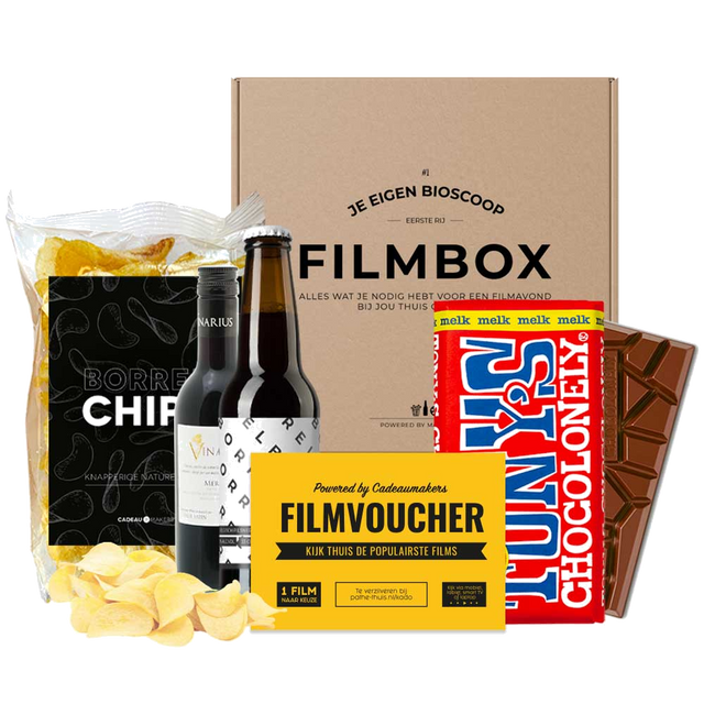 Geef dit jaar een kerstpakket dat gegarandeerd in de smaak valt: een complete filmavond voor thuis. Met het Filmpakket geef je collega’s of relaties het plezier van een avondje ontspannen op de bank, inclusief snacks, drank en een digitale filmvoucher. Gemakkelijk inwisselbaar en ideaal voor iedereen die van films houdt. Perfect als kerstgeschenk, eindejaarsattentie of relatiegeschenk.
