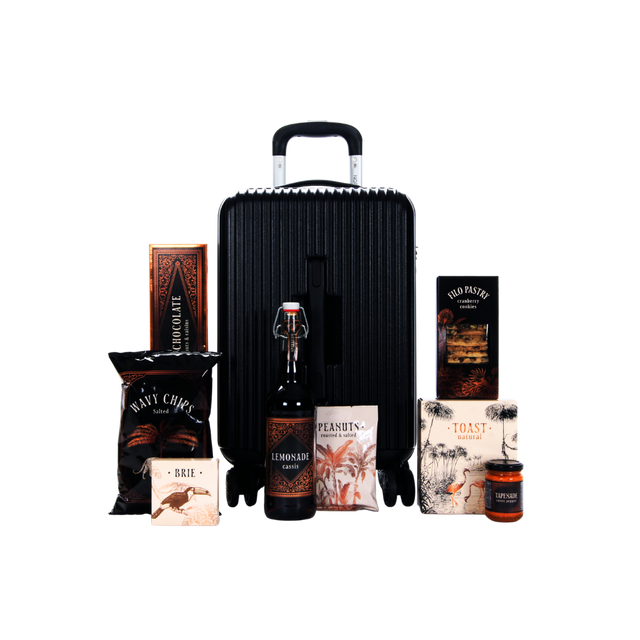 Dit luxe kerstpakket combineert de sprankelende smaak van Nature's Paradise sparkling limonade cassis (750 ml) met de praktische elegantie van de Norländer Street Line trolley in stijlvol zwart – perfect voor dagelijks gebruik of op reis.