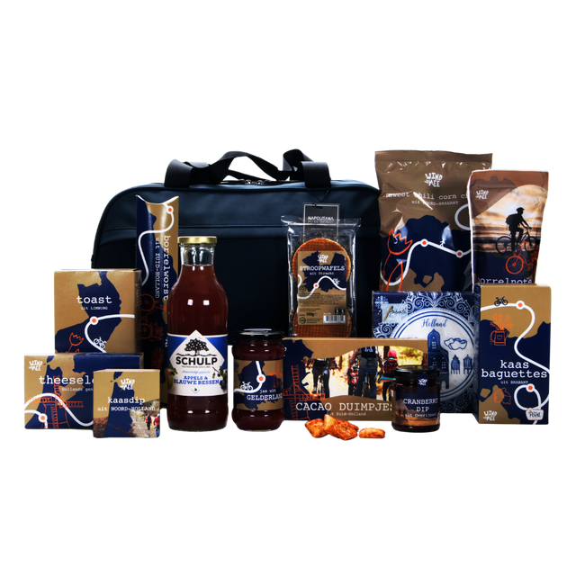Schulp appels & blauwe bessen & retro sporttas borrelpakket
