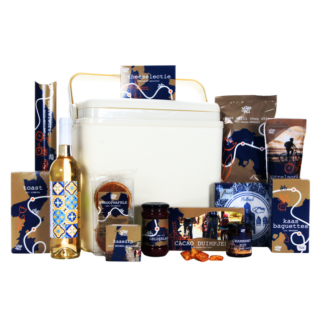 Het pakket is rijk gevuld met lekkernijen van Wind Mee: zoete halva vruchtenjam aardbei, een gevarieerde thee selectie (3 smaken), ambachtelijke stroopwafels, romige cacao duimpjes, pittige sweet chili corn chips, zachte smeer & dipkaas, knapperige borrelnoten, krokante toast naturel, hartige borrelworst, smaakvolle Goudse kaas baguettes en een frisse cranberry dip. Inclusief sfeervolle Holland Style servetten.