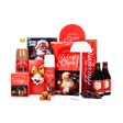Maak de feesttafel compleet met de feestelijke lekkernijen van Vintage Christmas: romige chocomelk (500 ml), zachte fudge speculaas (110 g), een stijlvolle koektrommel met kaneelkoekjes (150 g), een royale melkchocoladereep XXL met rozijnen en pinda’s (225 g), knapperige ribbelchips zout (150 g) en luchtige slagroom (250 g). Als extra verwennerij is er de luxe Praline collectie rood (100 g RFA). Afgewerkt met feestelijke Hush Hush servetten.