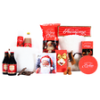 Het pakket is gevuld met smakelijke Vintage Christmas specialiteiten: romige chocolademelk (500 ml), ambachtelijke fudge speculaas (110 g), een feestelijke koektrommel met kaneelkoekjes (150 g), een royale melkchocoladereep XXL met rozijnen en pinda’s (225 g), knapperige ribbelchips zout (150 g) en luchtige slagroom (250 g). De luxe Praline collectie rood (100 g RFA) en vrolijke Happy Santa servetten maken het geheel compleet.