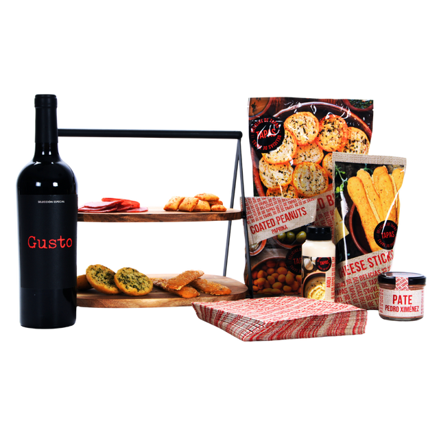 Dit kerstpakket bevat smaakvolle Delicias de Tapas-specialiteiten: romige aioli, hartige borrelnoten paprika, krokante geroosterde broodjes knoflook & peterselie, knapperige kaasstengels, verfijnde paté Pedro Ximénez en feestelijke servetten. Een geschenk dat stijl, smaak en gezelligheid combineert.