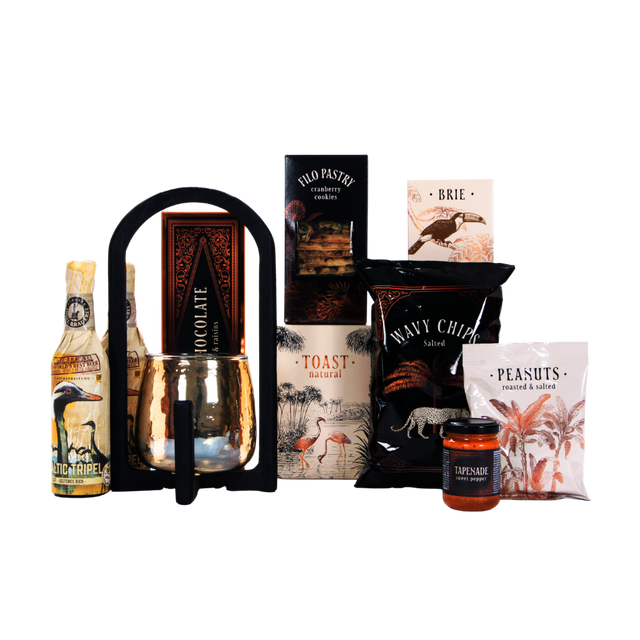 Een smaakvolle combinatie van ambachtelijk bier, verfijnde hapjes en een stijlvol woonaccessoire – ideaal voor een warme en feestelijke kerst.
