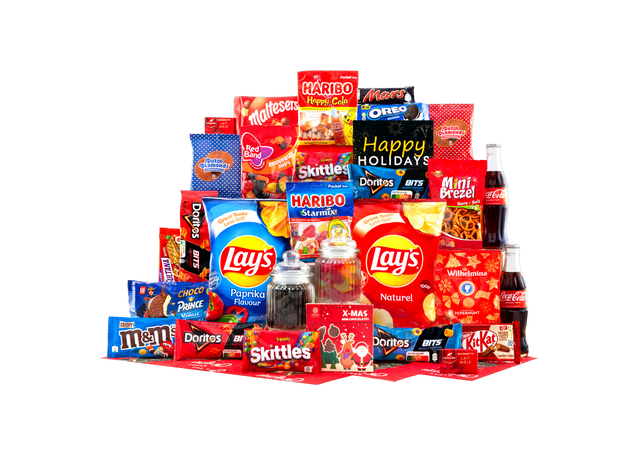 Verwen familie, collega’s of vrienden met dit zorgvuldig samengestelde snoep- en snackpakket. Perfect als cadeau voor de feestdagen, een bedankje of om samen van te genieten tijdens gezellige momenten. Het pakket is gevuld met een mix van bekende merken en zoete, zoute en knapperige lekkernijen, fraai verpakt in een feestelijke geschenkdoos en inclusief een kaart met de opdruk Happy Holidays. Dankzij de ruime variatie is er voor ieder wat wils: van klassieke stroopwafels en chocolade tot chips en fruitige snoepjes.