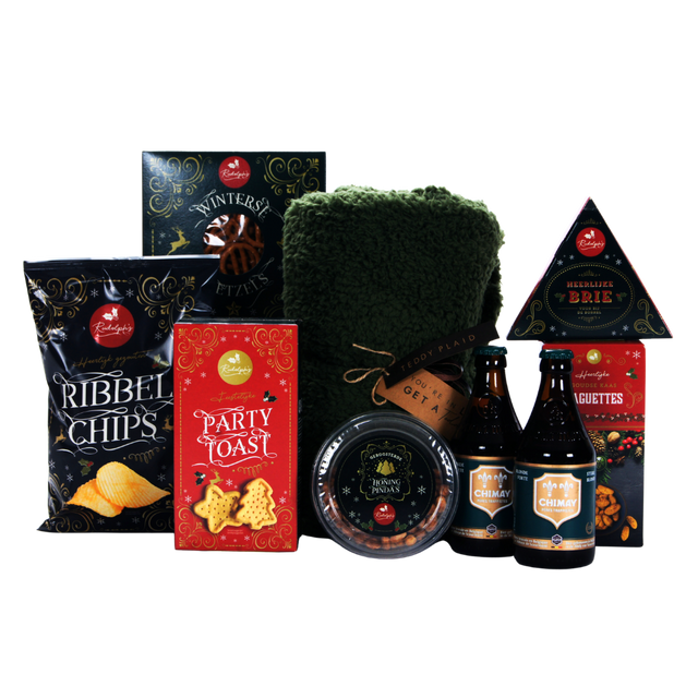 Geniet van knapperige Rudolph ribbelchips gezouten, romige brie, zoete en zoute honey roasted peanuts, krokante party toast, smaakvolle Goudse kaas baguettes en hartige winter pretzels. Een kerstpakket dat bierliefhebbers trakteert op smaak, sfeer en comfort.