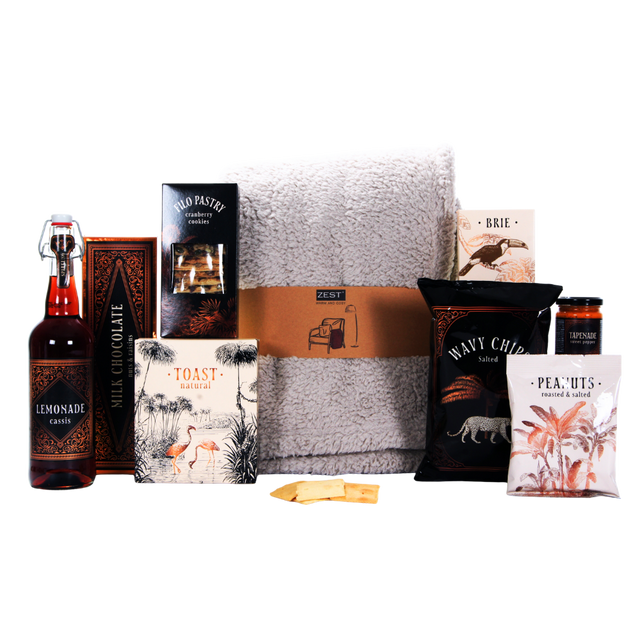 Een elegante combinatie van frisse limonade, hartige en zoete delicatessen en een luxe plaid – ideaal voor de feestdagen of als stijlvol relatiegeschenk.