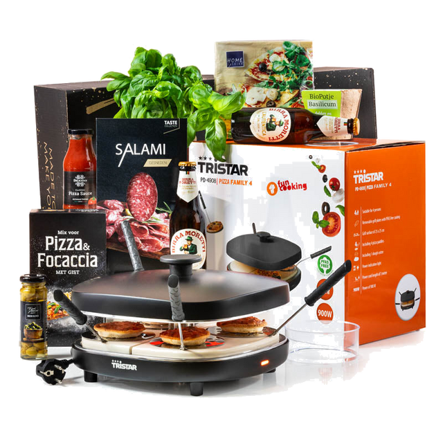 Breng samen gezelligheid en smaak aan tafel met dit complete pizzapakket voor de hele familie. Met de moderne pizzamaker zet je in een handomdraai knapperige, zelfgemaakte pizza's op tafel — perfect voor foodies, vriendenavonden of een bijzondere familiebijeenkomst. Dit originele cadeau is ideaal voor iedereen die van pizza houdt en graag samen kookt: eenvoudig, smaakvol en een leuke activiteit voor jong en oud.