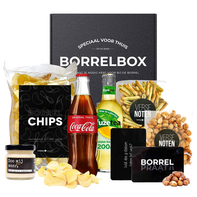 Wacht niet te lang: maak iemand blij met deze complete borrelervaring. Bestel vandaag nog en laat de ontvanger genieten van een avond vol smaak, gezelligheid en onverwachte gesprekken.