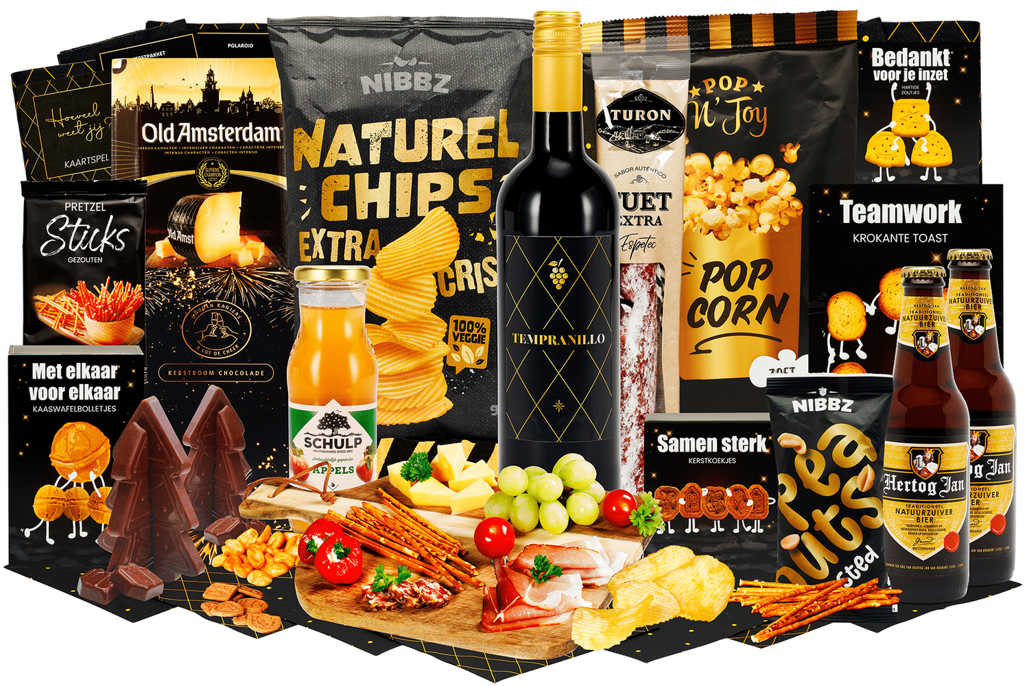 Winterse borrelplank combineert smaakvolle producten en sfeervolle presentatie voor gezellige winteravonden. Geniet direct van een mix van kaas, snacks en bijpassende dranken. Klaar verpakt in een feestelijke doos, ideaal om cadeau te geven of meteen te serveren.