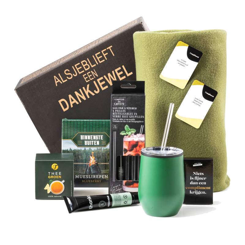 Ontdek het perfecte kerstgeschenk voor natuurliefhebbers en rustzoekers: een stijlvol groen kerstpakket dat warmte, comfort en ontspanning brengt. Dit zorgvuldig samengestelde pakket is ideaal voor wie graag buiten is of een mindful moment waardeert. Omwikkel jezelf met een zachte deken, geniet van warme drankjes onderweg en verwen handen en smaakpapillen met gezonde snacks en verzorging.
