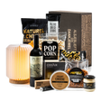 De lamp is de blikvanger: een opvouwbare papieren LED-lamp met een warme, zachte gloed op een houten voet. Licht opladen is eenvoudig met de meegeleverde powerbank; zo heb je meteen sfeer, waar je ook bent. De geselecteerde snacks en de Spaanse rode wijn maken het pakket compleet en geschikt voor gezellige avonden met vrienden, collega’s of een moment voor jezelf.