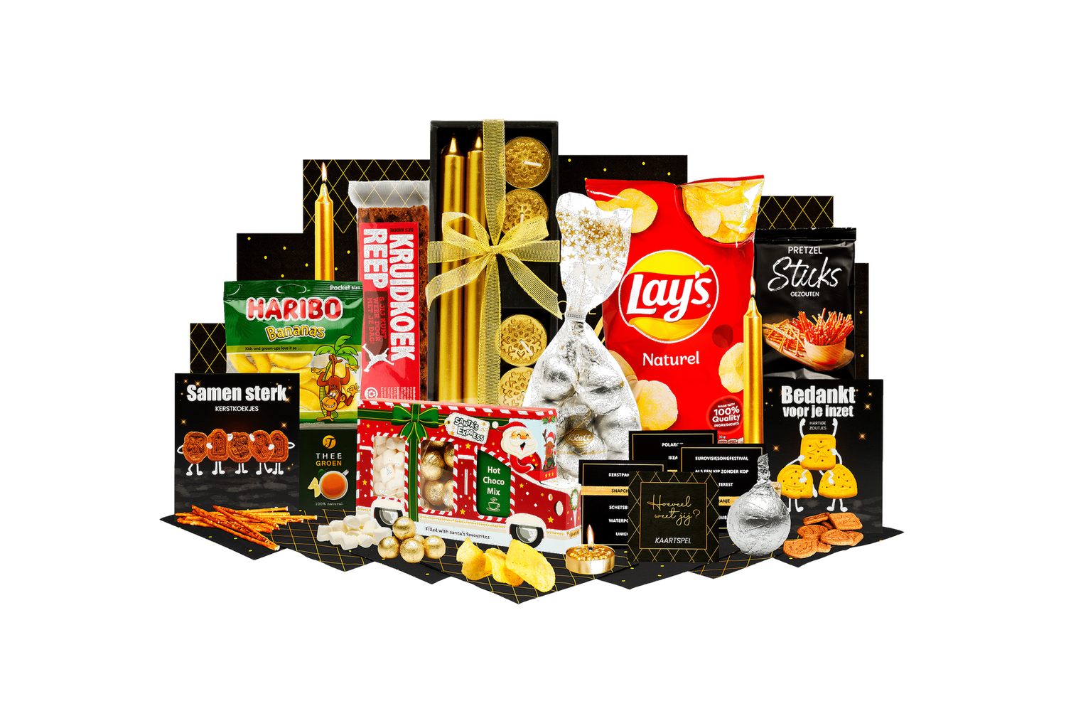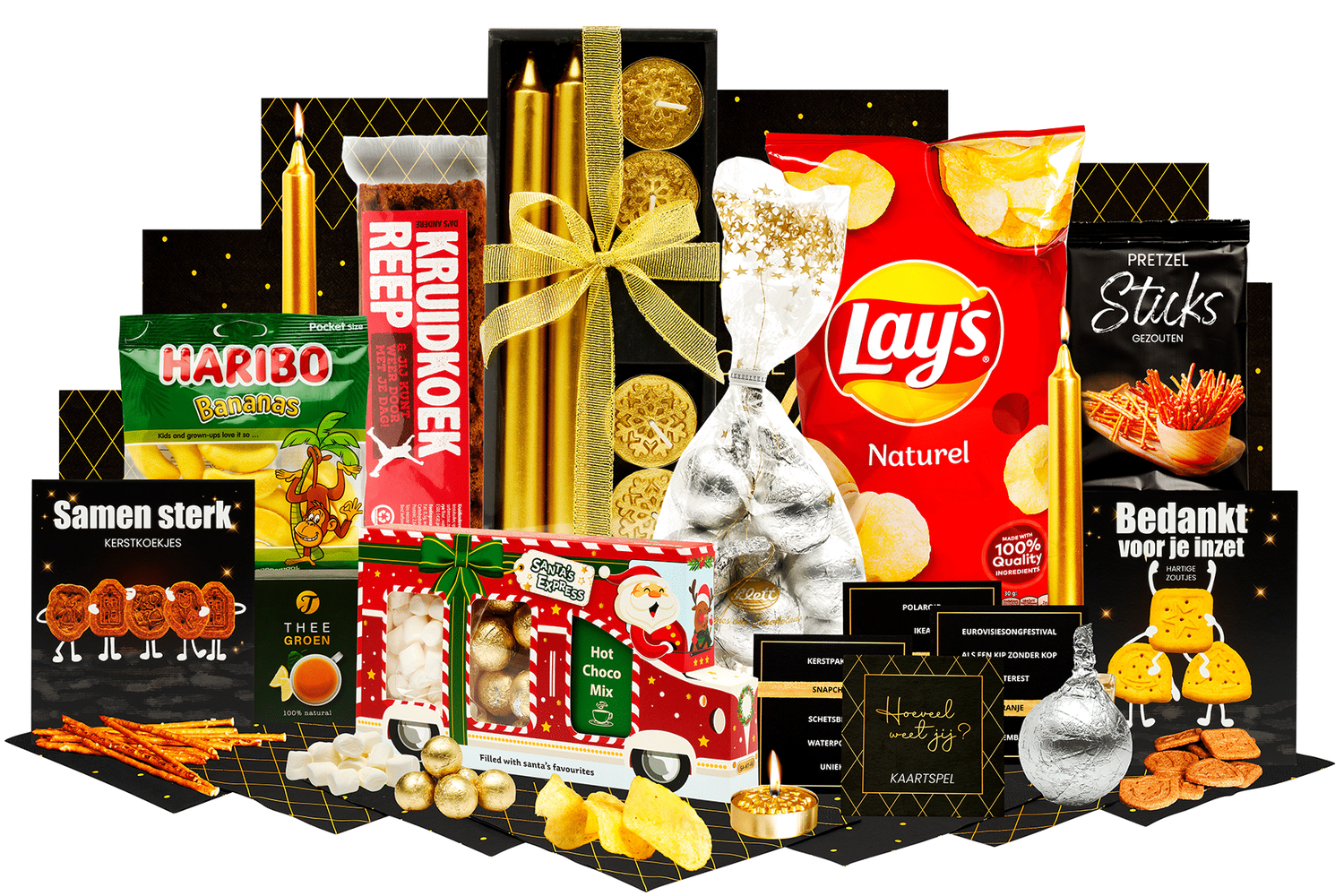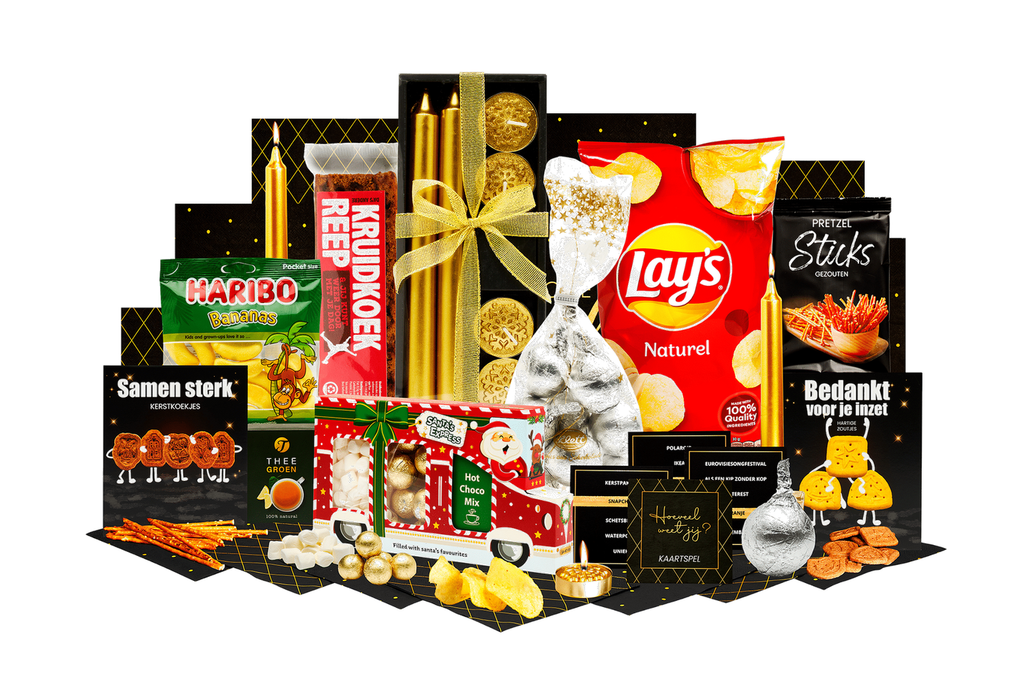 de kersttruck! Brengt sfeer en lekkers samen. Een complete kerstbox vol zoete en hartige verrassingen. Perfect om cadeau te geven of om samen van te genieten.