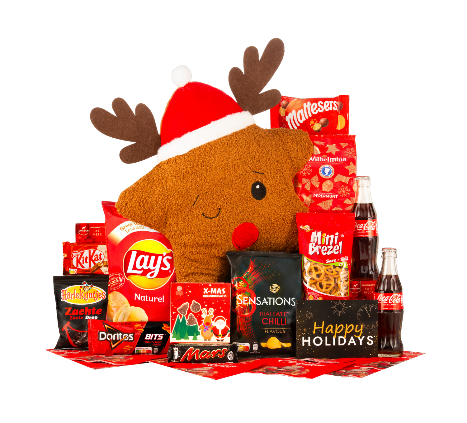 Verras iemand deze feestdagen met ons heerlijke kerstpakket vol snoep, chocola en hartige lekkernijen. Dit smaakvolle cadeau wordt geleverd in een feestelijke geschenkdoos en is perfect als bedankje, relatiegeschenk of gezellige attentie onder de kerstboom. De combinatie van bekende merken en knapperige snacks zorgt voor een heerlijke afwisseling: van zoete chocolade tot licht-zoute chips en traditionele drop. Met een persoonlijke kerstkaart erbij maak je het extra warm en persoonlijk.