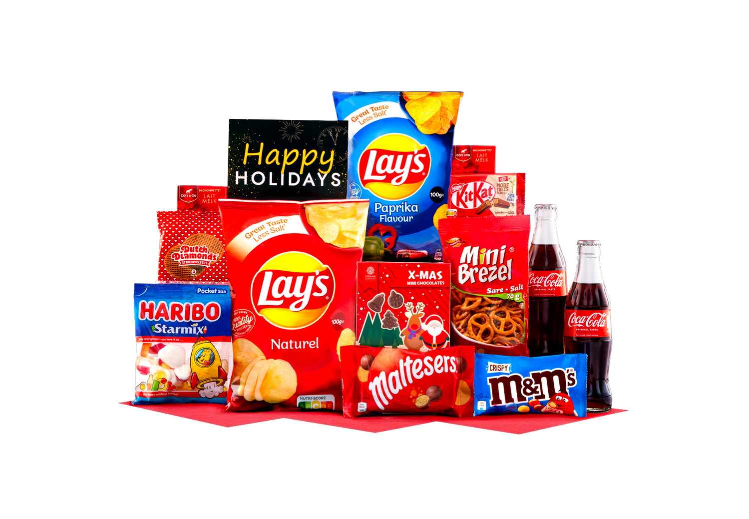 Verras iemand met het ultieme feestelijke snackpakket: een zorgvuldig samengestelde doos vol iconische lekkernijen en winterse verrassingen. Dit luxe geschenk is perfect voor vrienden, familie of collega's die genieten van herkenbare merken en knusse momenten. De feestelijke verpakking en de bijgevoegde kerstkaart maken het compleet en zorgen voor een persoonlijke touch tijdens de feestdagen.