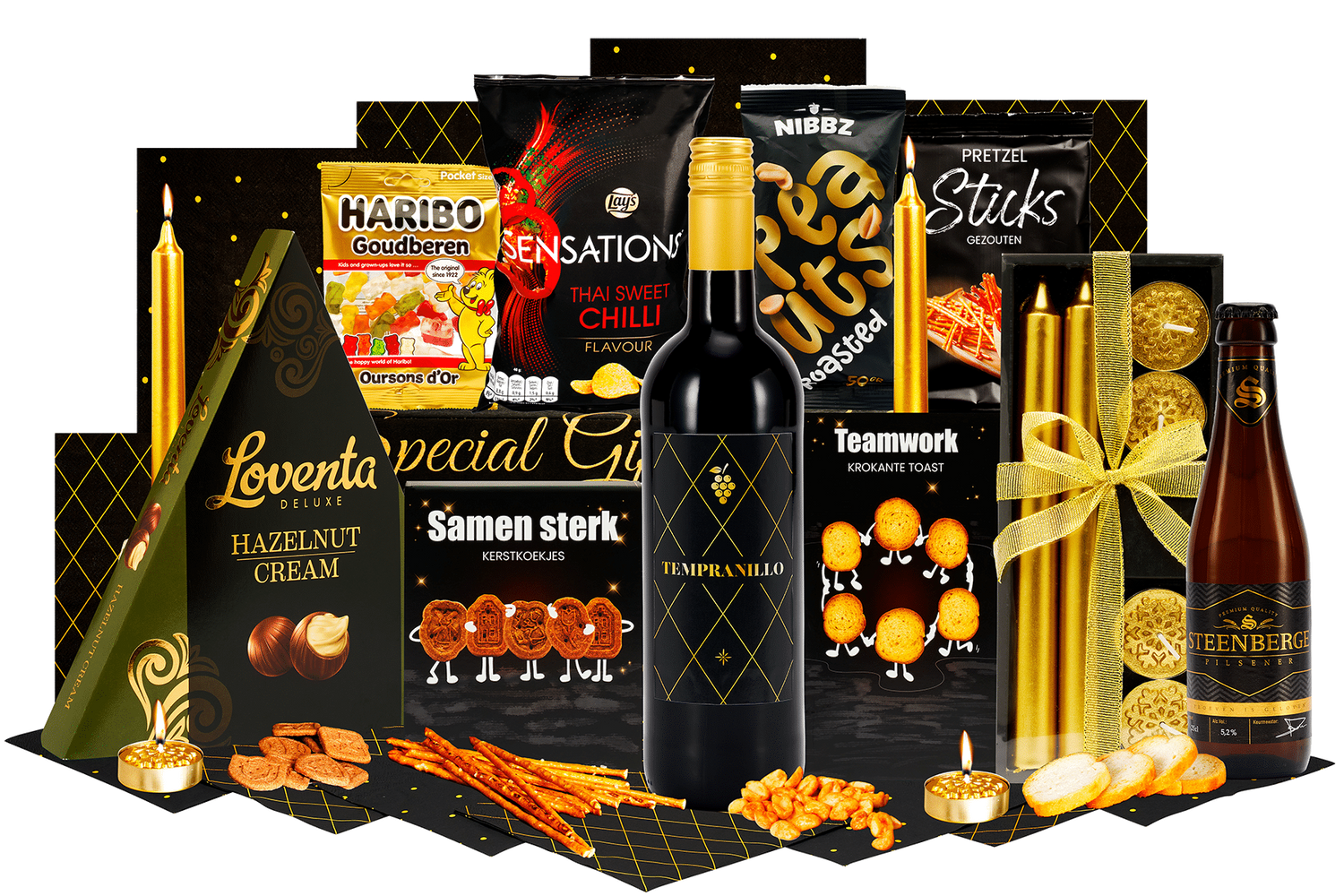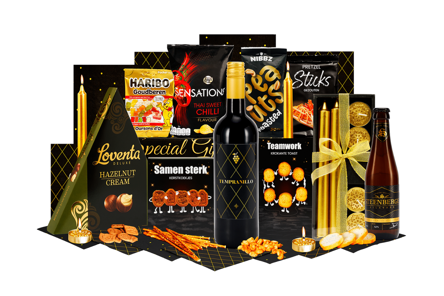 Kerst in stijl is een elegante, kant-en-klare geschenkbox voor de feestdagen. Deze set combineert heerlijke snacks en drank met sfeervolle accessoires. Ideaal om direct cadeau te geven of een gezellige tafel te dekken.