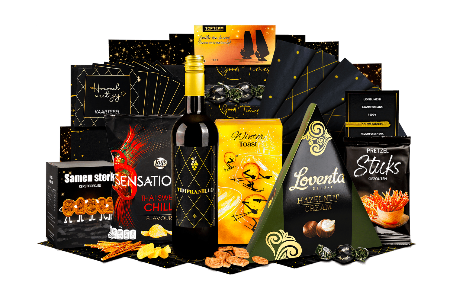 Een stijlvolle attentie voor collega's, klanten of vrienden. Kwalitatieve producten in een feestelijke verpakking, klaar om direct cadeau te geven. Ideaal voor kerst of een persoonlijk bedankmoment.