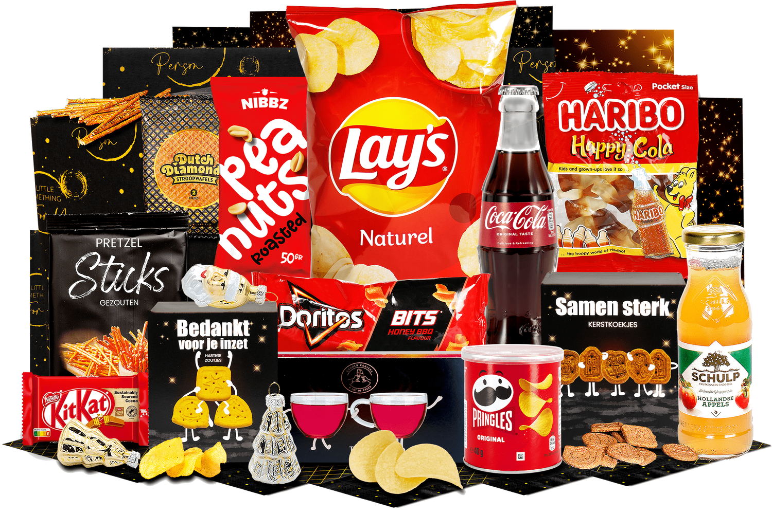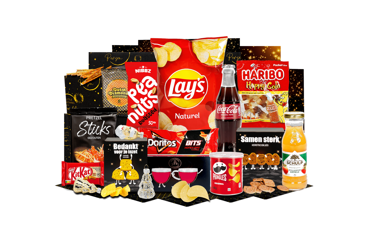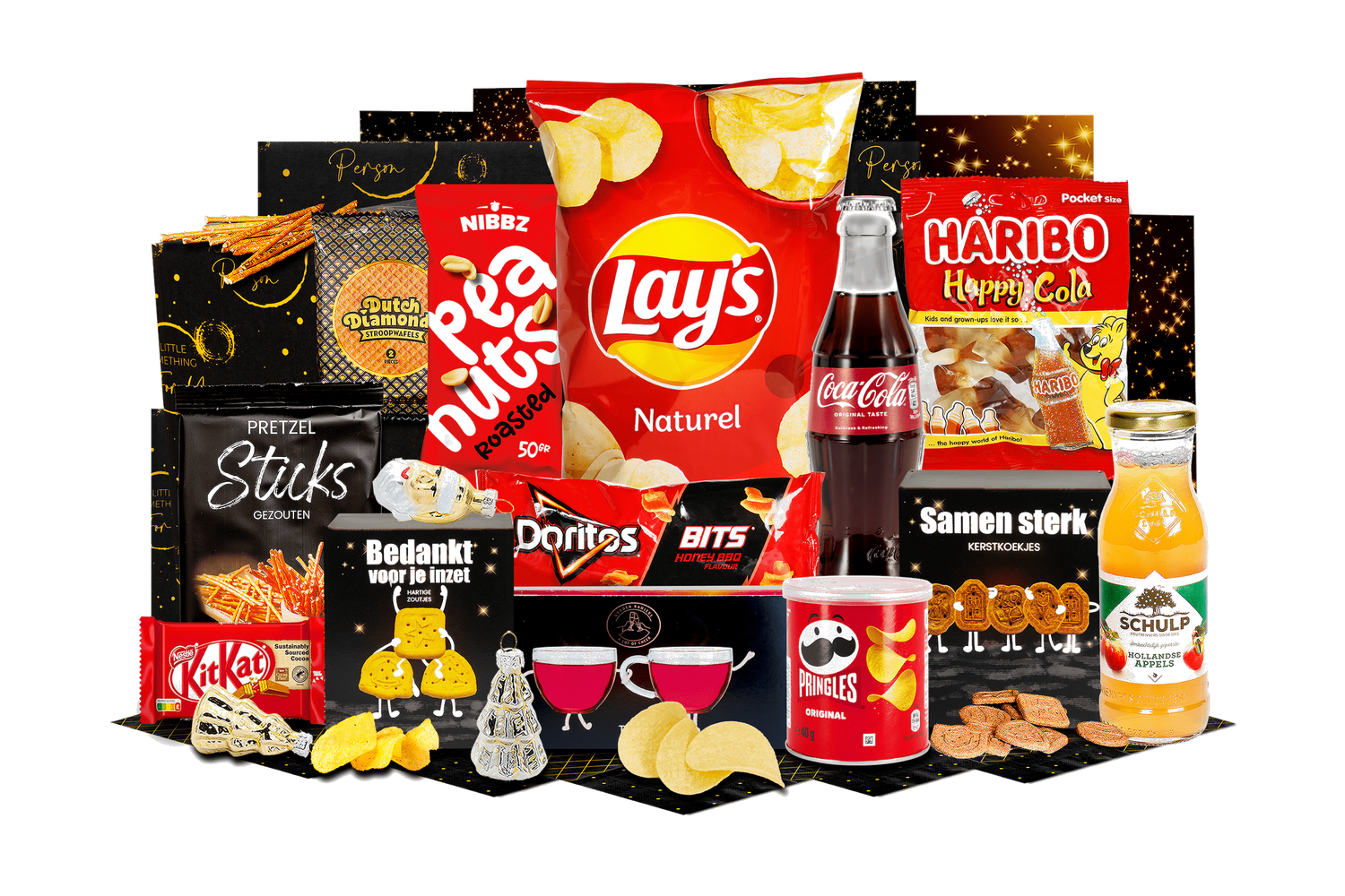 Merkenfestival brengt een feestelijke selectie van bekende snacks en dranken samen. Populaire merken en afwisselende smaken, verpakt in een stijlvolle kerstdoos. Perfect om te delen, als kerstcadeau of als relatiegeschenk.