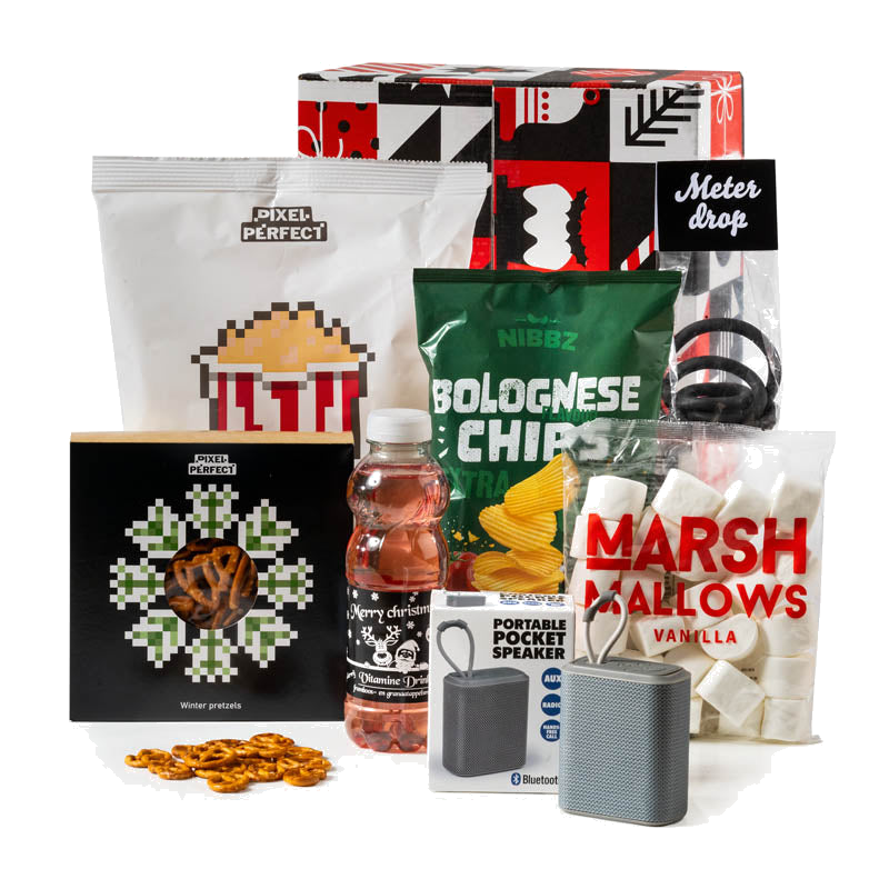 Ontdek het Pixel Party Pakket: hét kerstcadeau voor de snack- en chillfanaten. Dit pakket tilt gezellige avonden naar een hoger niveau en is perfect voor iedereen die houdt van gamen, streamen of muziekmomenten met vrienden. Met een mix van smaakvolle snacks, zoete guilty pleasures en een compacte, draagbare speaker creëer je direct die ontspannen, feestelijke sfeer.