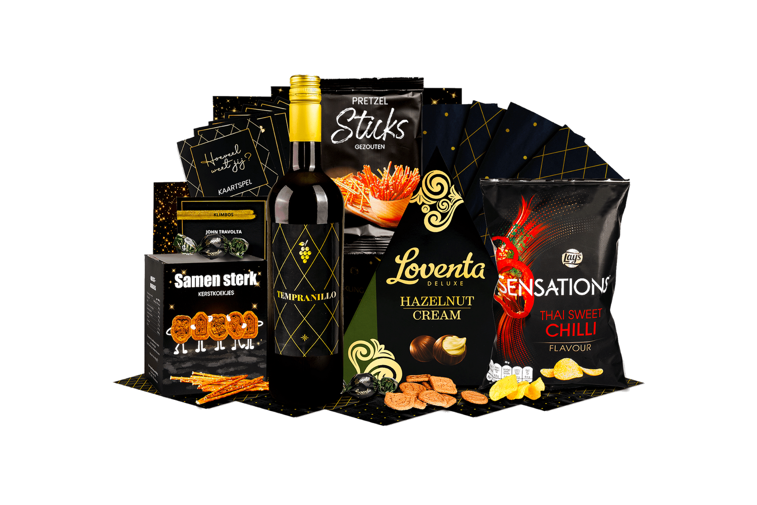 Samen sterk is een feestelijk geschenkpakket voor warme momenten samen. Het bevat zorgvuldig samengestelde lekkernijen en een volle Tempranillo om te delen. Klaar verpakt in een stijlvolle kerstdoos, direct klaar om te geven.