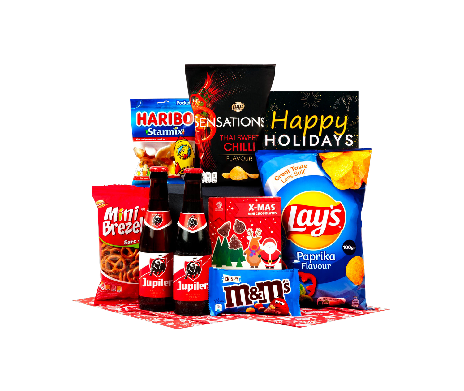 Waarom dit pakket kiezen? Naast de aantrekkelijke presentatie biedt het assortiment voor elk wat wils: hartige chips en zoute pretzels, knapperige chocolade en zoete snoepjes, én twee gekoelde biertjes om het geheel af te maken. De verpakking is direct klaar om cadeau te geven, waardoor je tijd bespaart en altijd een professioneel ogend presentje hebt. Perfect voor bedrijven die werknemers of klanten willen bedanken, of particulieren die een persoonlijke en feestelijke attentie zoeken.