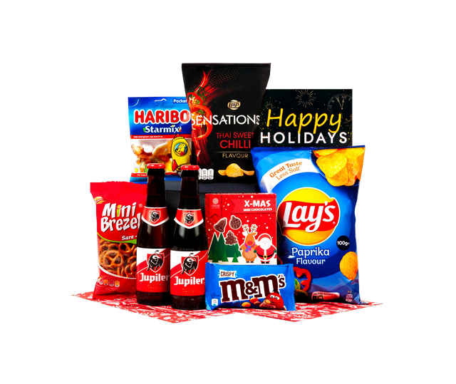 De geschenkdoos is stijlvol en feestelijk verpakt en bevat naast heerlijke producten ook een feestelijke kaart met de tekst Happy Holidays, zodat je meteen een persoonlijke boodschap kunt meegeven. Dankzij de uitgebalanceerde mix van bekende merken en kwalitatieve snacks valt dit pakket bij vrijwel iedereen in de smaak.