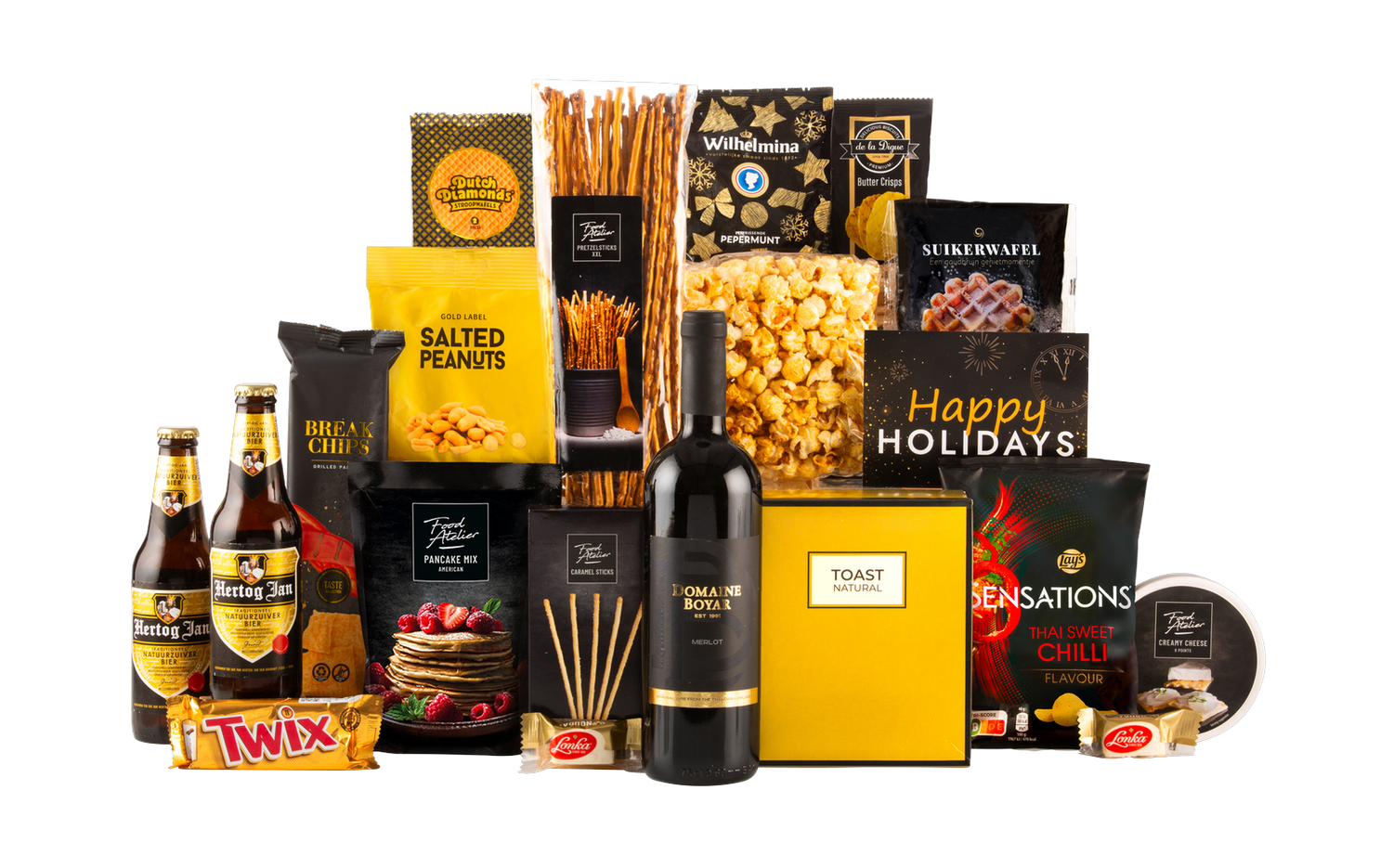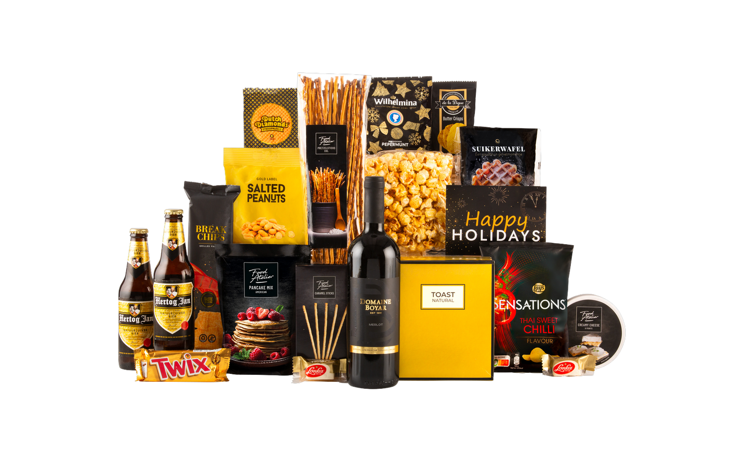 Het pakket combineert lokale favorieten en bekende merken voor een toegankelijke, toch luxueuze beleving. De presentatie in een feestelijke geschenkdoos geeft direct een feestelijk gevoel, terwijl de mix van zoet en zout zorgt voor een gevarieerde smaakervaring. Ideaal voor bedrijven die een duurzame indruk willen maken of particulieren die een compleet cadeau zoeken zonder extra gedoe.