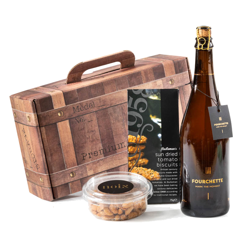 Verras dit seizoen met een smaakvol kerstgeschenk dat stijl en gezelligheid samenbrengt. In een sfeervolle houtlook koffer vindt de ontvanger een perfecte combinatie van verfijnde smaken: een elegante fles Belgisch speciaalbier, knapperige hartige biscuits met zongedroogte tomaat en smaakvolle pinda’s met een vleugje honing en zout. Dit pakket is ideaal voor wie van goede smaken houdt en wil genieten van ontspannen momenten aan tafel of bij de open haard.