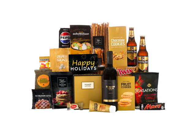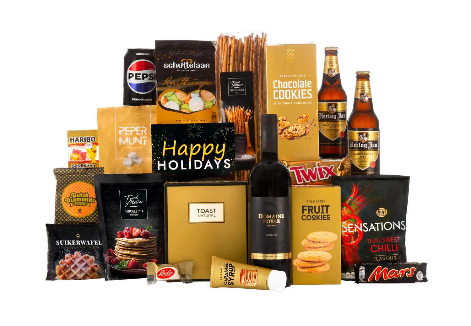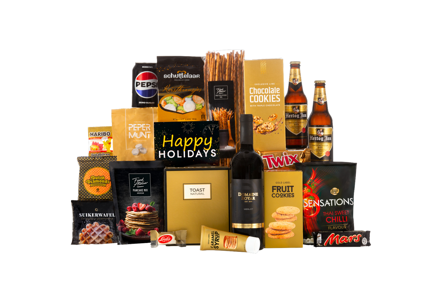 Geef een smaakvol en stijlvol gebaar deze feestdagen. Voeg het Feestelijk cadeaupakket Deluxe toe aan uw winkelwagen en maak iemand blij met een complete beleving van borrelhapjes, zoete verwennerijen en een heerlijke fles wijn.