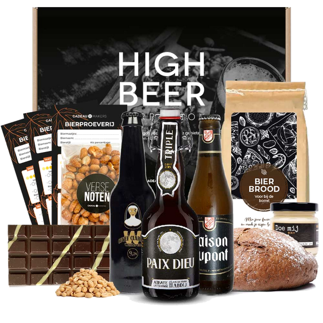 Verras uw team of relaties met het ultieme kerstgeschenk: een luxe bierproeverij pakket waarmee u in een handomdraai de gezelligheid van een High Beer thuis brengt. Dit zorgvuldig samengestelde pakket combineert drie prijswinnende speciaalbieren met bijpassende hapjes en een bierbroodmix, zodat proeven, vergelijken en genieten centraal staan tijdens de feestdagen. Perfect als bedrijfsrelatiegeschenk of personeelsattentie die kwaliteit en beleving uitstraalt.