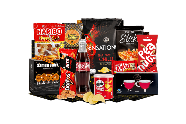 Bekende merken biedt een zorgvuldig samengesteld pakket met populaire snacks en dranken en bevat 13 artikelen. Perfect als cadeau of voor een gezellige borrel. Alles komt netjes verpakt in een feestelijke kerstdoos.