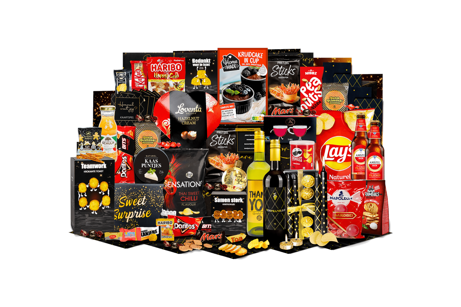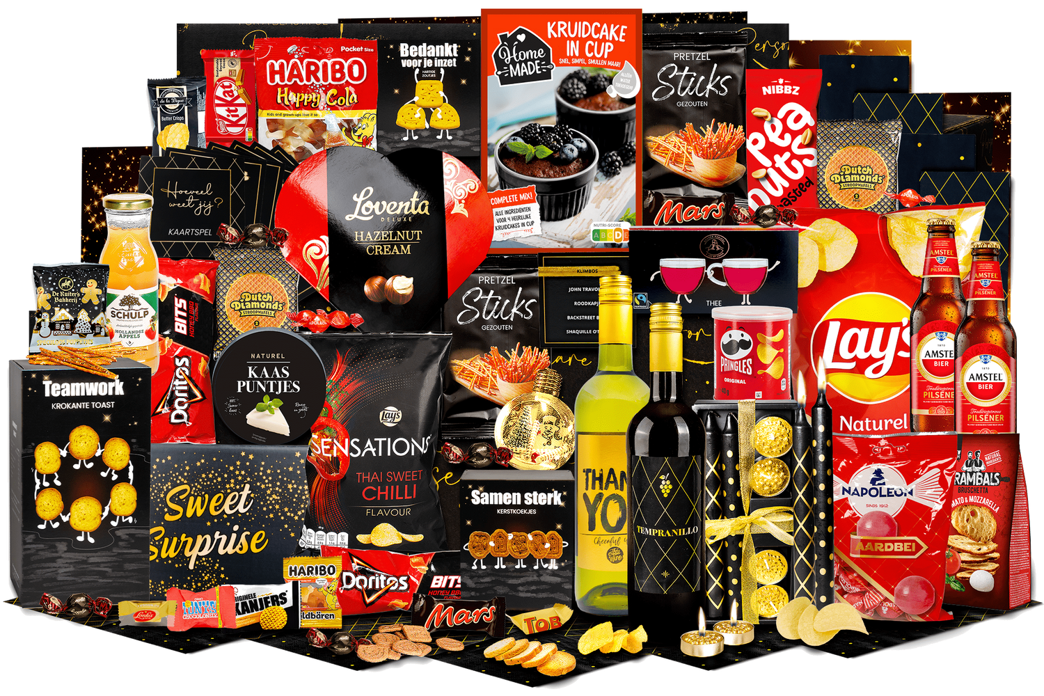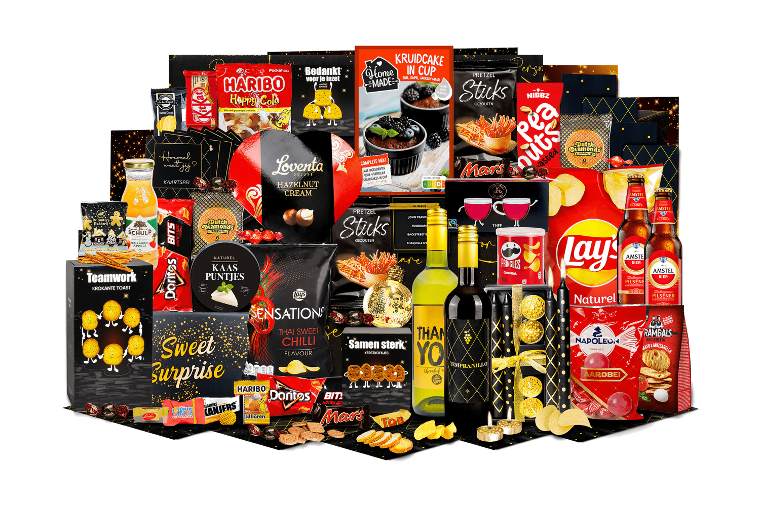 Bomvol is een feestelijke cadeaubox boordevol hartige en zoete lekkernijen plus een selectie dranken en sfeermakers. Perfect als relatiegeschenk of cadeau voor vrienden en familie. Wordt geleverd in een feestelijke kerstdoos, klaar om te geven.