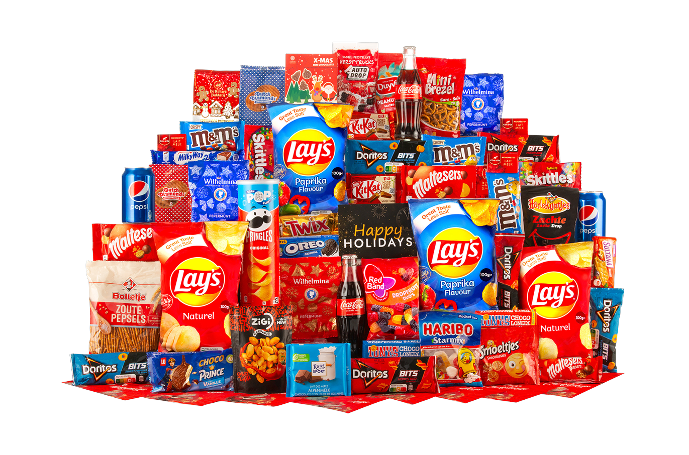 - Topmerken: bekende namen zoals Coca Cola, Tony's Chocolonely, Pringles, KitKat en meer.