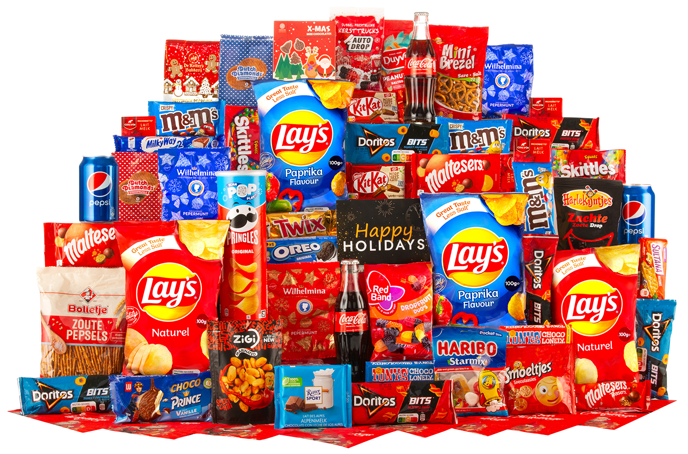 Dit pakket is zorgvuldig samengesteld om een uitgebalanceerde mix van smaken te bieden: zoute snacks, knapperige chips, luxe chocolade, fruitige snoepjes en traditionele lekkernijen. Dankzij de herkenbare merken en aantrekkelijke presentatie maak je gegarandeerd indruk.