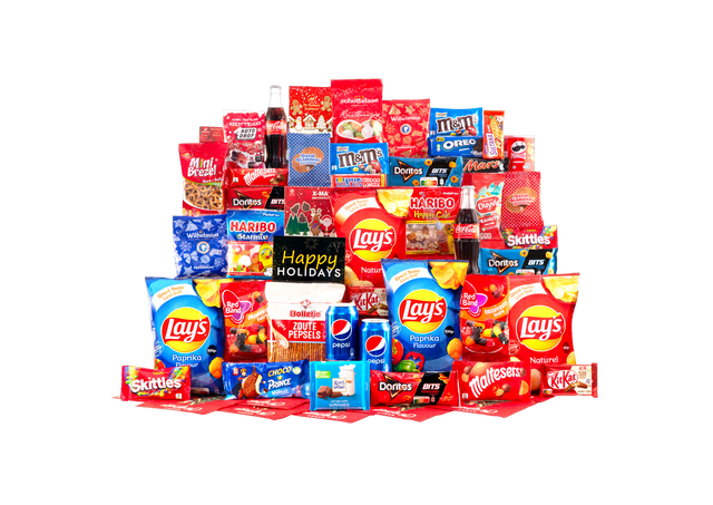 Verras familie, vrienden of zakelijke relaties met ons Feestelijk Snackpakket Deluxe: een zorgvuldig samengestelde selectie van 50 populaire zoete en hartige lekkernijen, verpakt in een feestelijke geschenkdoos met kaartje. Dit pakket brengt de kerststemming en vrolijkheid direct naar de deur: ideaal als relatiegeschenk, klantbedankje of gezellige attentie voor thuis. De mix bevat bekende merken en favoriete klassiekers — perfect om te delen tijdens borrels, vergaderingen of als smakelijke verrassing onder de kerstboom.