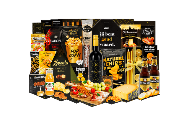 Borrel & Bites is een feestelijke cadeaubox boordevol lekkere hapjes en dranken. Compleet en stijlvol samengesteld, ideaal om te delen tijdens een borrel of om cadeau te doen.