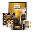 Verras uw relaties, collega's of dierbaren met ons kerstpakket Enjoy the Good Life — een verfijnde combinatie van luxe en smaak in elegante zwart-gouden tinten. Dit stijlvolle samenstel ademt rust en klasse en is zorgvuldig samengesteld om te genieten van heerlijke momenten: een warm kopje thee in een chique mok, begeleid door handgemaakte zoetigheden met karakter. Perfect als zakelijke gift of persoonlijk presentje tijdens de feestdagen.