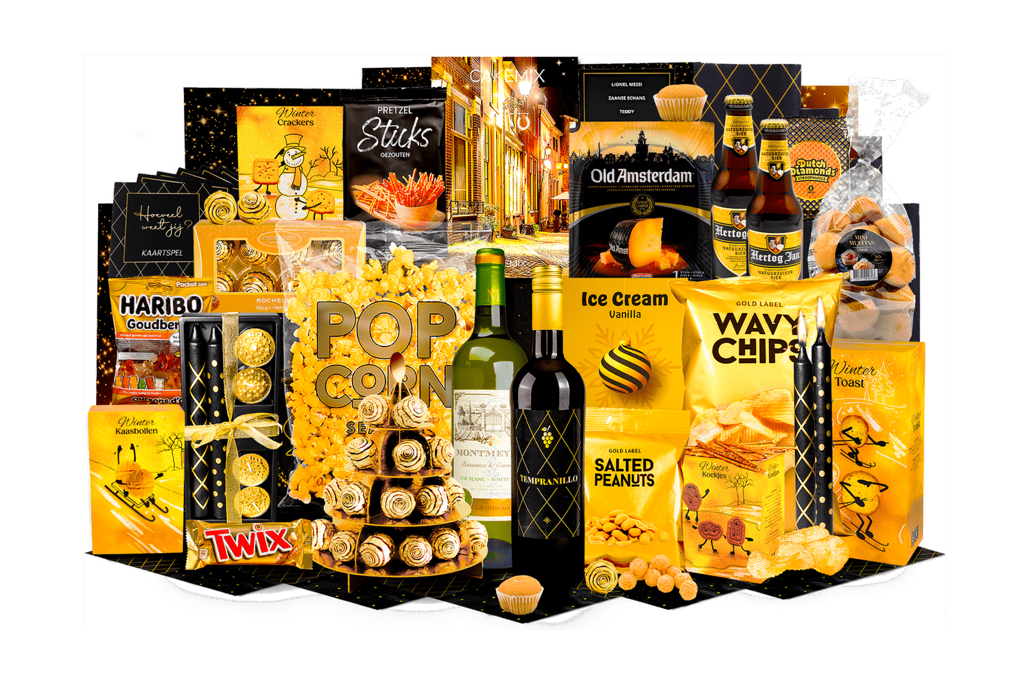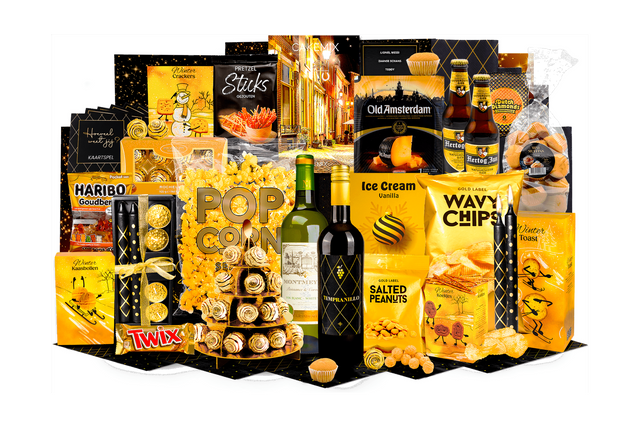 Gouden verwenmomenten is een luxe samengestelde cadeaubox vol smaakvolle lekkernijen en sfeervolle accessoires. Perfect om iemand te verrassen of een gezellige avond compleet te maken. Wordt feestelijk verpakt en is direct klaar om te geven.