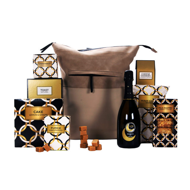 Verwen jezelf of een ander met cake citroen & gember (400 g), romige camembert spread (125 g), verfijnde filo pastry koekjes amaretti (50 g), kruidige fudge speculaas (110 g), hartige kaaskoekjes cheddar & peper (57,5 g), knapperige ribbelchips zout (90 g) en krokante toast (100 g).