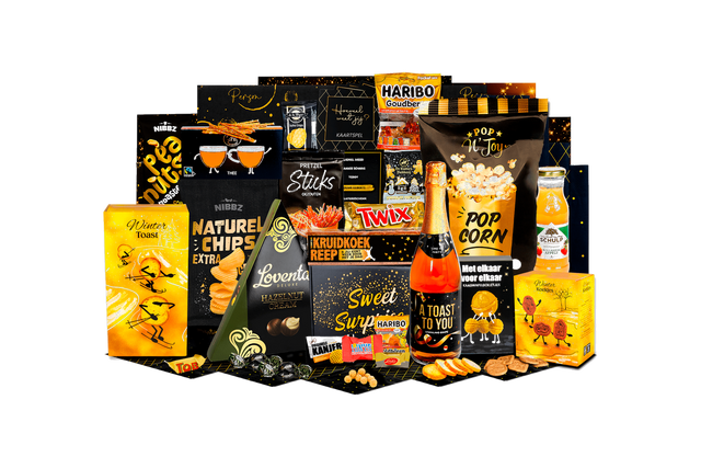 Met vlag en wimpel. Een feestelijke cadeaubox boordevol smaakvolle lekkernijen en gezellige verrassingen. Stijlvol verpakt en direct klaar om cadeau te geven.