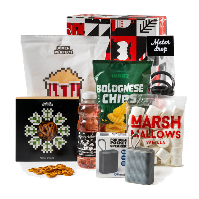 Ontdek het Pixel Party Pakket: hét kerstcadeau voor de snack- en chillfanaten. Dit pakket tilt gezellige avonden naar een hoger niveau en is perfect voor iedereen die houdt van gamen, streamen of muziekmomenten met vrienden. Met een mix van smaakvolle snacks, zoete guilty pleasures en een compacte, draagbare speaker creëer je direct die ontspannen, feestelijke sfeer.