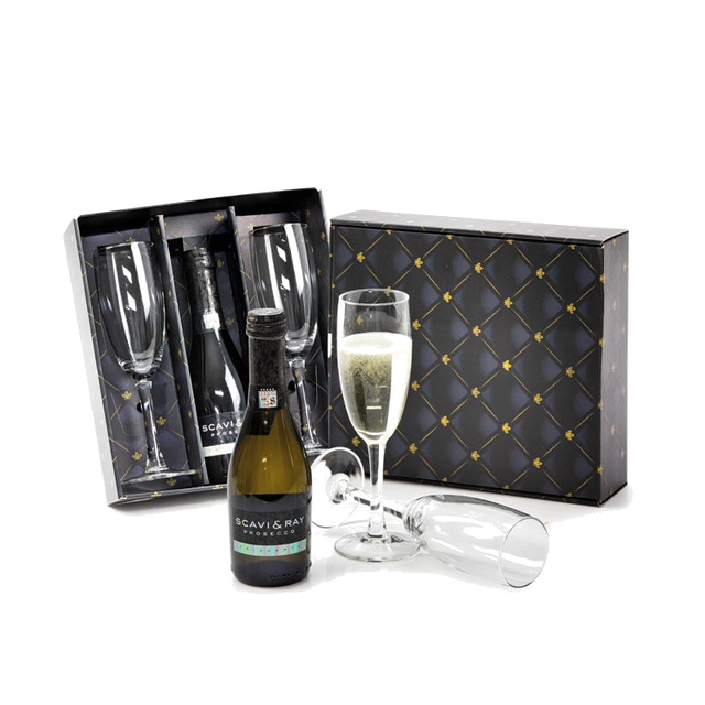 Waarom dit pakket kiezen? De Prosecco is gemaakt van hoogwaardige Proseccodruiven en biedt een mooie balans tussen fruitige tonen en een verfijnde structuur. De compacte 20 cl fles is ideaal om te delen of om te serveren als welkomsdrankje tijdens bijeenkomsten. De twee sierlijke flûtes versterken de beleving en maken de set meteen geschikt om cadeau te geven zonder extra aankopen.