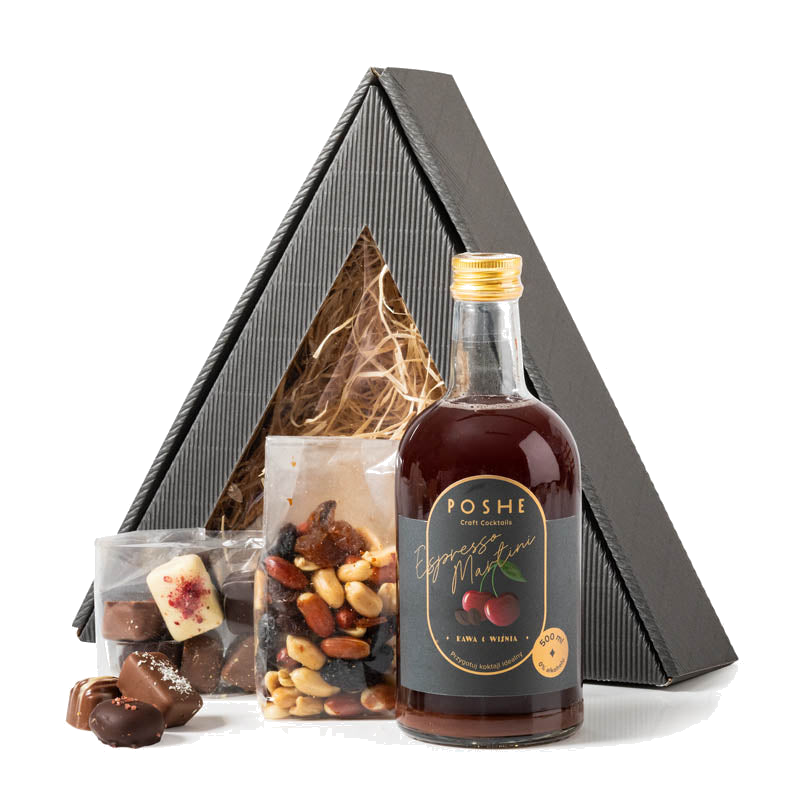 Ontdek de luxe van een alcoholvrije Espresso Martini met een verrassende twist. Dit elegante pakket bundelt alles wat je nodig hebt voor een smaakvolle moment van verwennerij: een 0,0% Poshe Espresso Martini met subtiele kersentoets, een huisgemaakte mix voor het perfecte glas én een verfijnde selectie pralines en noten. Perfect als cadeau, voor een gezellige avond thuis of om indruk te maken op een feestje — zonder alcohol.