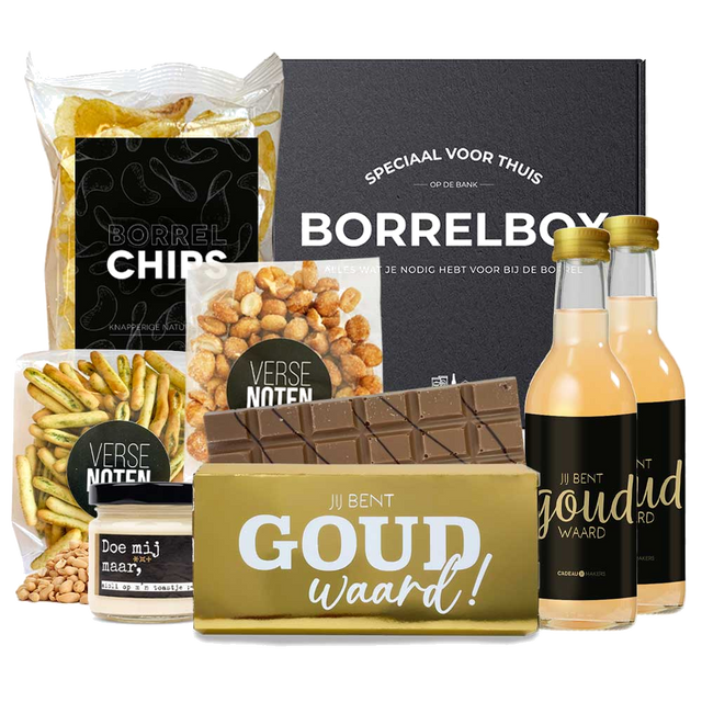 - Verpakt in een luxe Borrelbox geschenkverpakking (zwart)