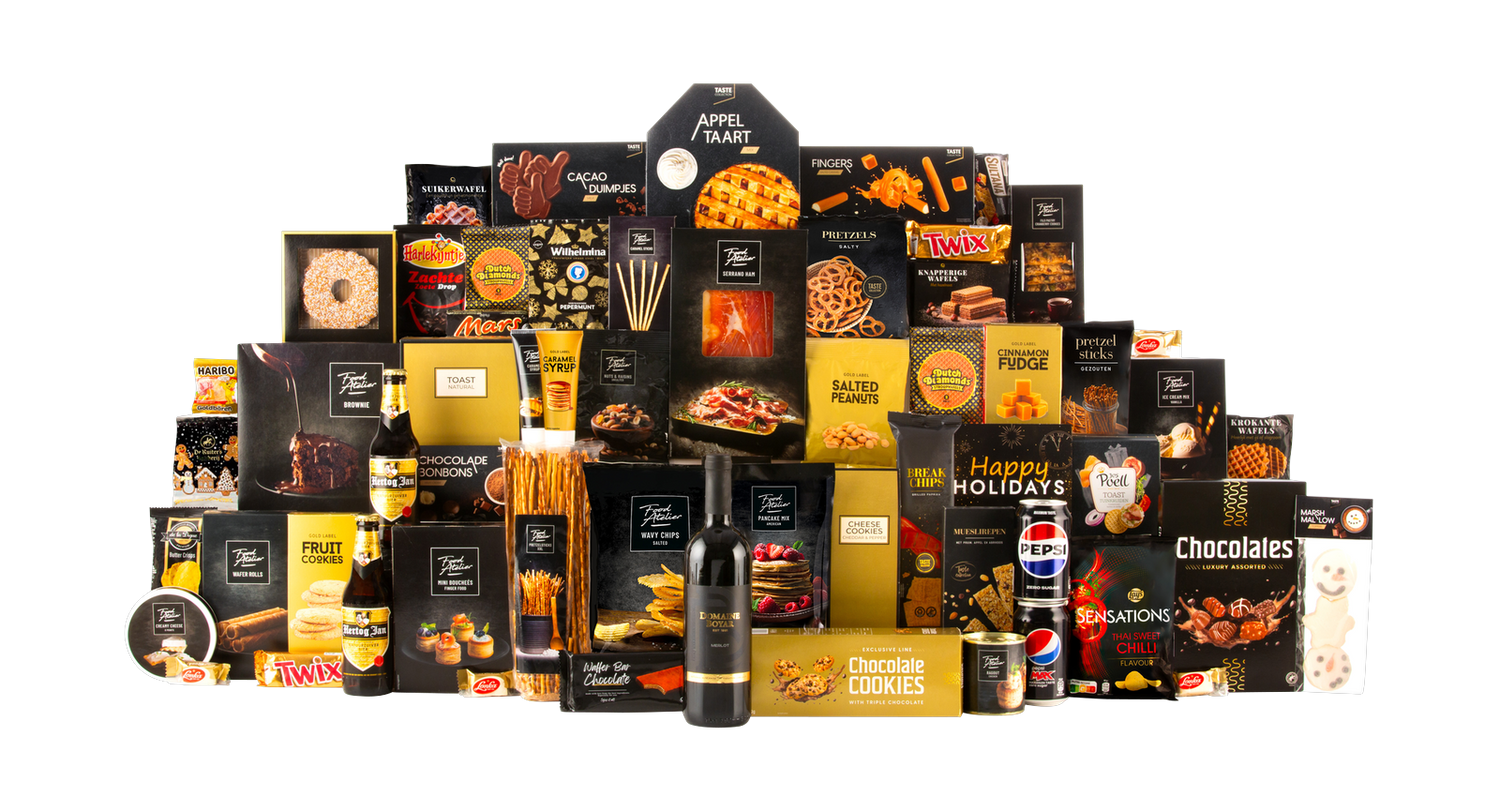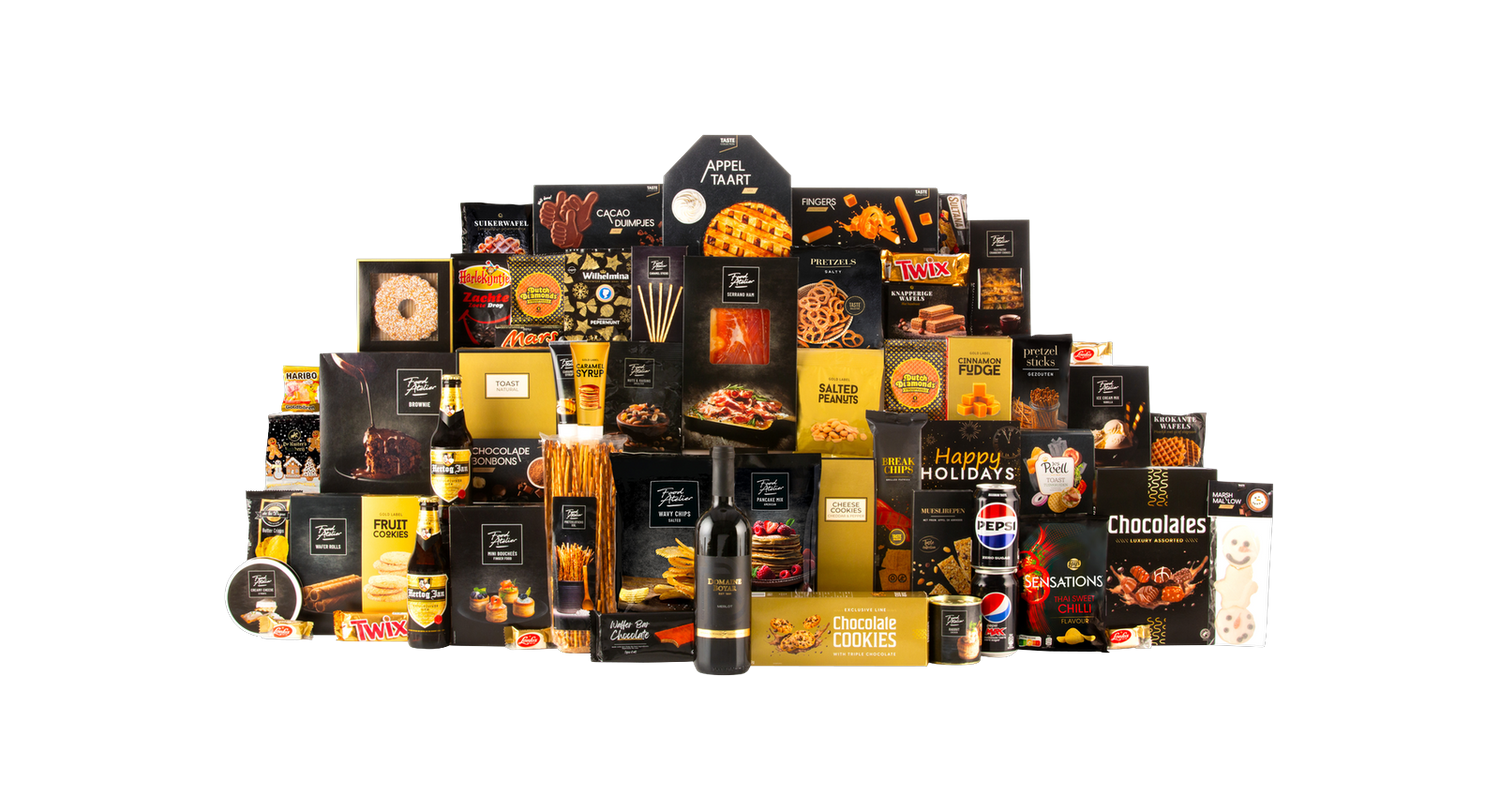 Bestel vandaag nog en maak iemand blij met dit complete, feestelijke pakket vol lekkernijen. Ideaal om te delen en om van te genieten tijdens speciale momenten.