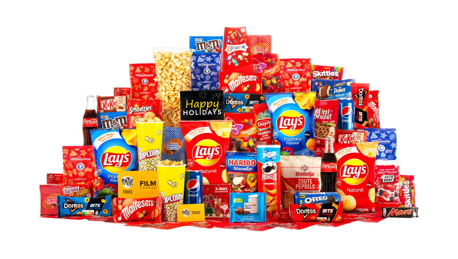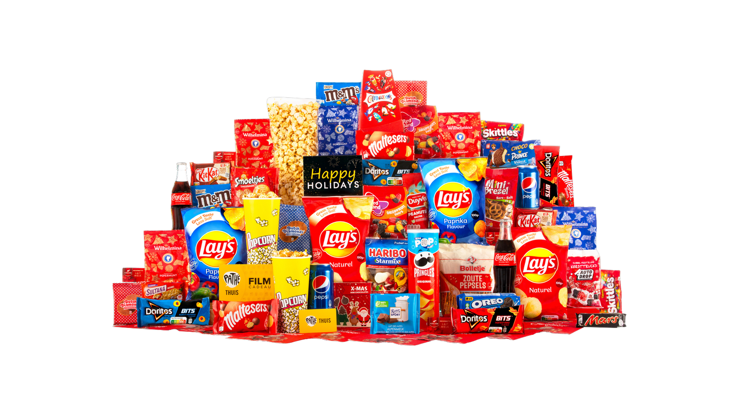 Verras iemand met een royaal cadeaupakket boordevol filmsnacks, zoetigheden en bruisende frisdrank. Dit feestelijk verpakte pakket is perfect voor een gezellige avond thuis, een origineel kerstcadeau of als attentie voor vrienden en familie die houden van een ontspannende filmavond. De combinatie van hartige chips, knapperige koekjes, chocoladefavorieten en verfrissende cola zorgt voor een complete beleving. Bovendien zit er een Pathé Thuis cadeaubon bij zodat de ontvanger zelf een film naar keuze kan huren en genieten van echte bioscoopkwaliteit op de bank.