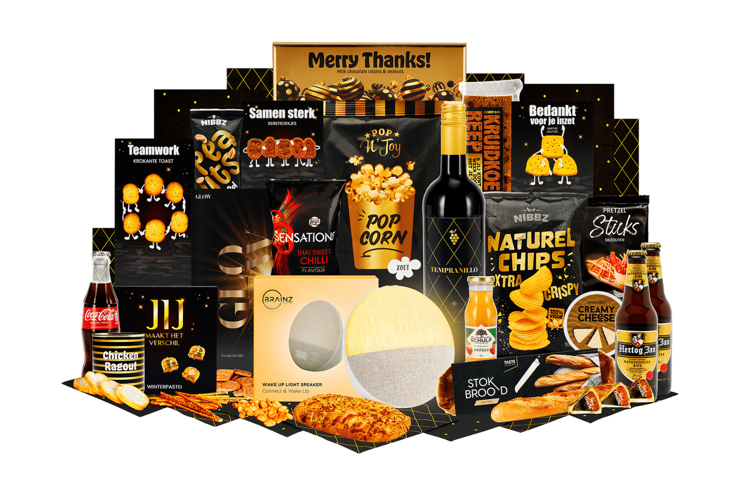 Goedemorgen! Een feestelijke ontbijt- en borrelbox met zorgvuldig geselecteerde producten. Handig verpakt in een feestelijke kerstdoos, ideaal als cadeau of om direct van te genieten.
