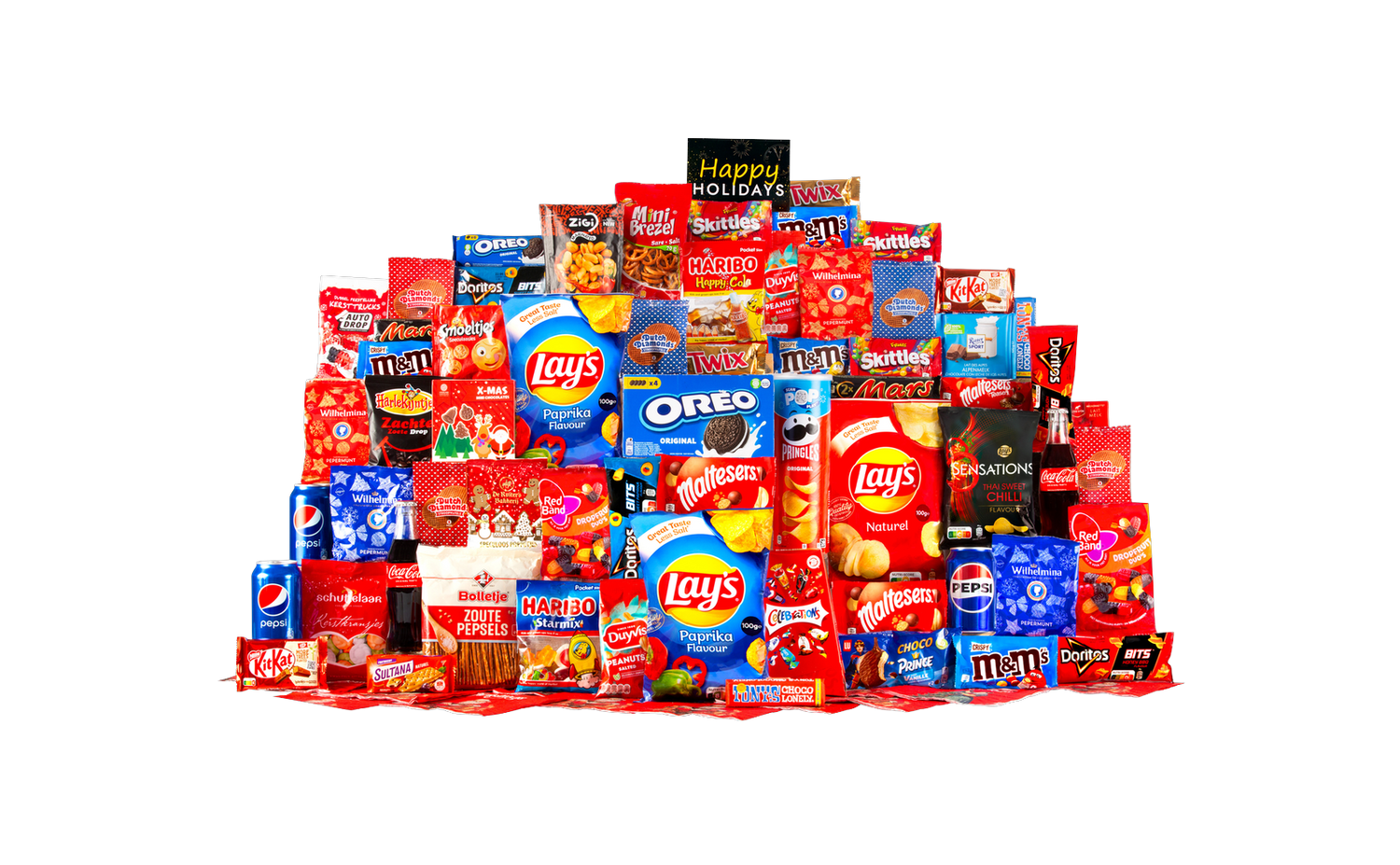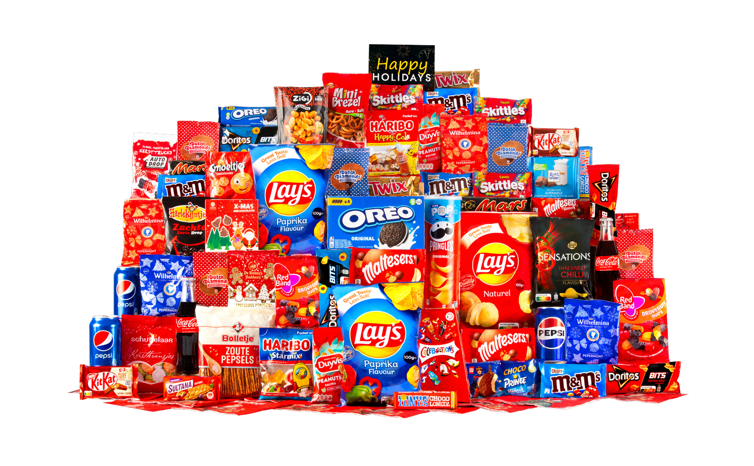 Wil je een onvergetelijke indruk maken deze feestdagen? Bestel dit feestelijke snoep- en snackpakket en ontvang een compleet, smaakvol en professioneel samengesteld cadeau dat iedereen blij maakt. Klik op 'In winkelwagen' om snel af te rekenen en verzekerd te zijn van een heerlijk cadeaupakket.